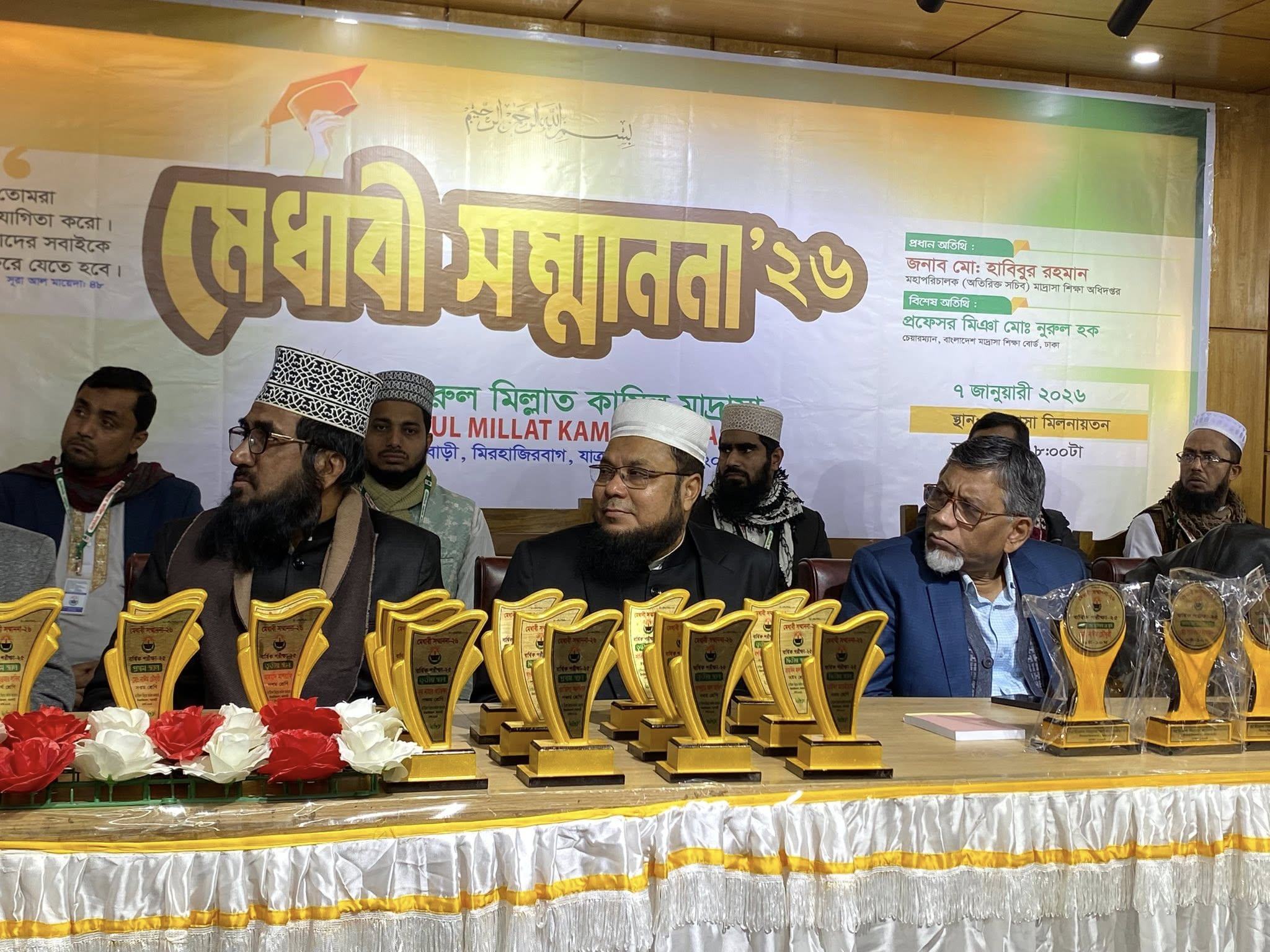 রাজধানীর ঐতিহ্যবাহী দীনি শিক্ষাপ্রতিষ্ঠান তামিরুল মিল্লাত কামিল মাদরাসা, ঢাকা-এর উদ্যোগে আয়োজিত হলো ‘মেধাবী সম্মাননা-২০২৬’। বুধবার (৭ জানুয়ারি) মাদরাসা মিলনায়তনে এক জাঁকজমকপূর্ণ অনুষ্ঠানের মাধ্যমে কৃতি শিক্ষার্থীদের এ সম্মাননা প্রদান করা হয়।