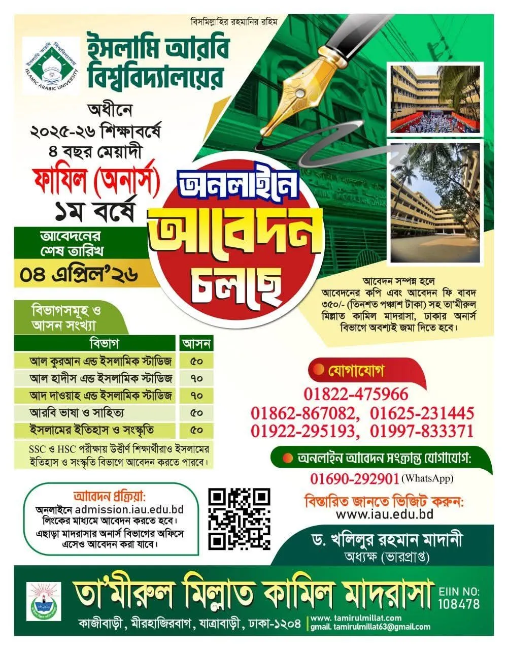 তা‘মীরুল মিল্লাত কামিল মাদরাসা বাংলাদেশের একটি শীর্ষস্থানীয় আলিয়া মাদরাসা, যা আদর্শ ও আধুনিক শিক্ষার এক অনন্য সমন্বয়। ১৯৬৩ সালে প্রতিষ্ঠিত এই মাদরাসাটি দীর্ঘ পথচলায় নৈতিকতা ও জ্ঞানের মাধ্যমে শিক্ষার্থীদের যুগোপযোগী করে গড়ে তোলার জন্য কাজ করছে। এখানে ইবতেদায়ী থেকে কামিল (স্নাতকোত্তর) পর্যন্ত শিক্ষার্থীদের জন্য বিজ্ঞান, মানবিক ও বাণিজ্য বিভাগের পাশাপাশি কুরআন, হাদিস, ও আরবি ভাষার ওপর গভীর জ্ঞানার্জনের সুযোগ রয়েছে। আমাদের লক্ষ্য এমন একটি প্রজন্ম তৈরি করা, যারা ইসলামী মূল্যবোধকে ধারণ করে আধুনিক বিশ্বের চ্যালেঞ্জ মোকাবিলায় সক্ষম হবে এবং দেশ ও জাতির উন্নয়নে ভূমিকা রাখবে।
